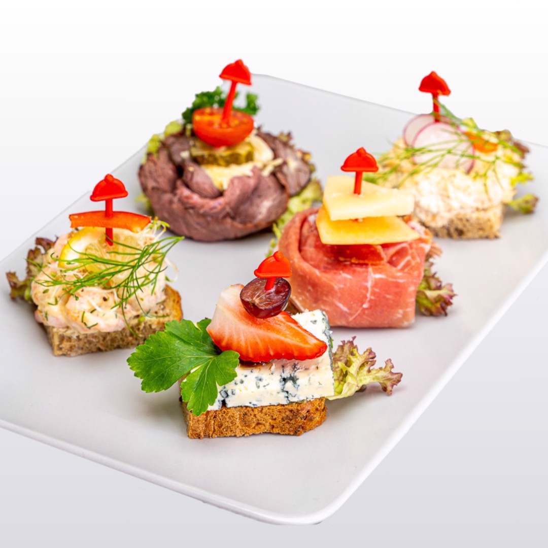 Perfekt for elegante sammenkomster, møter eller feiringer der du ønsker å imponere gjestene med både smak og presentasjon. Våre danske kanapéer gir en sofistikert og smakfull opplevelse!