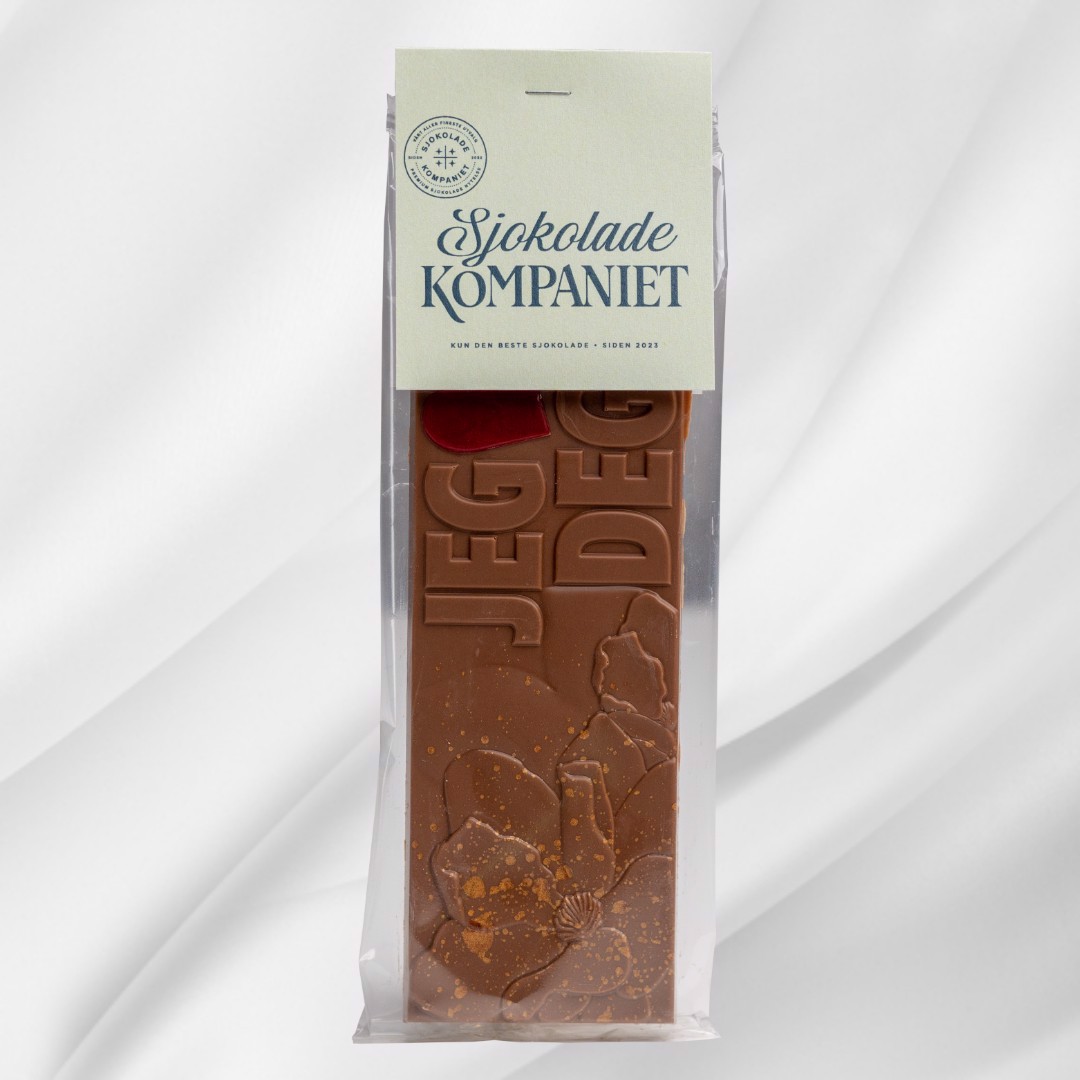 Glad i Deg! sjokoladeplate – en delikat blanding av melkesjokolade og karamellsjokolade. Den ideelle gaven når du synes noen fortjener en kjærlighetshilsen. Vår sjokoladeplate med teksten Jeg Elsker Deg er en søt og personlig måte å vise kjærlighet på. Den er laget av fyldig melkesjokolade og silkemyk karamellsjokolade – en uimotståelig kombinasjon som smelter både i munnen og i hjertet. Enten du vil overraske kjæresten, en god venn eller noen du bare setter ekstra stor pris på, er denne platen en velsmakende og oppriktig kjærlighetserklæring.