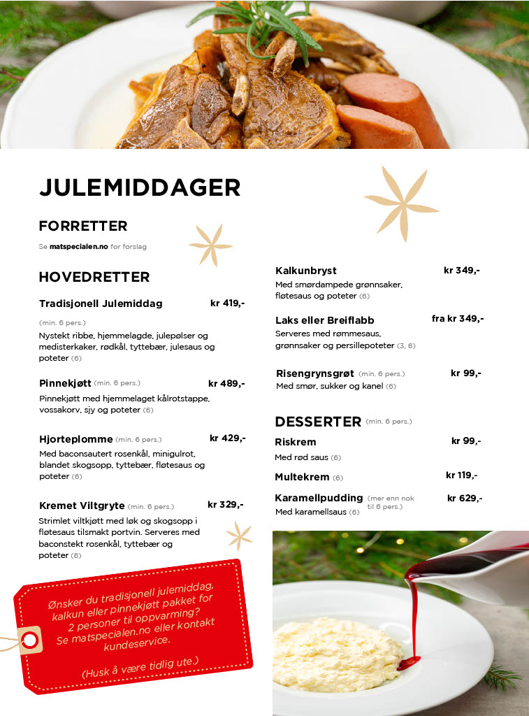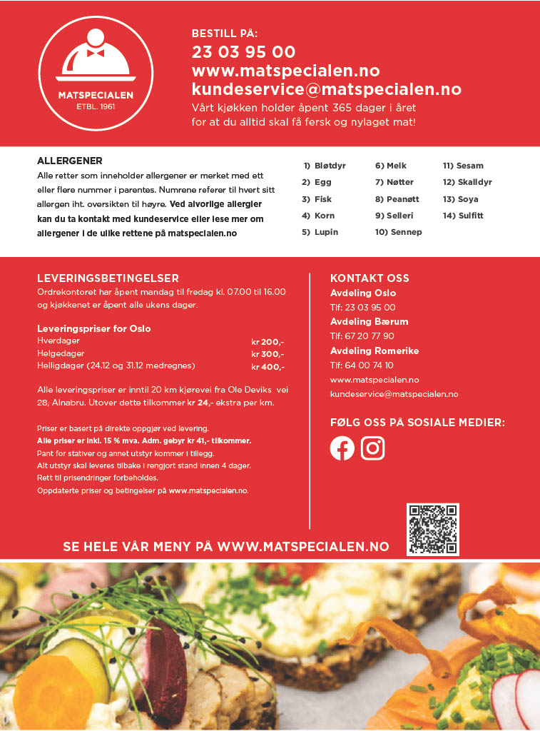 Trenger du en utskriftsvennlig versjon av menyen vår? (PDF) Klikk her!